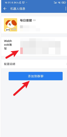 配置群的机器人,然后在群里添加机器人,然后获取机器人的webhook地址就行,下面的步骤不用操作。 配置教程
